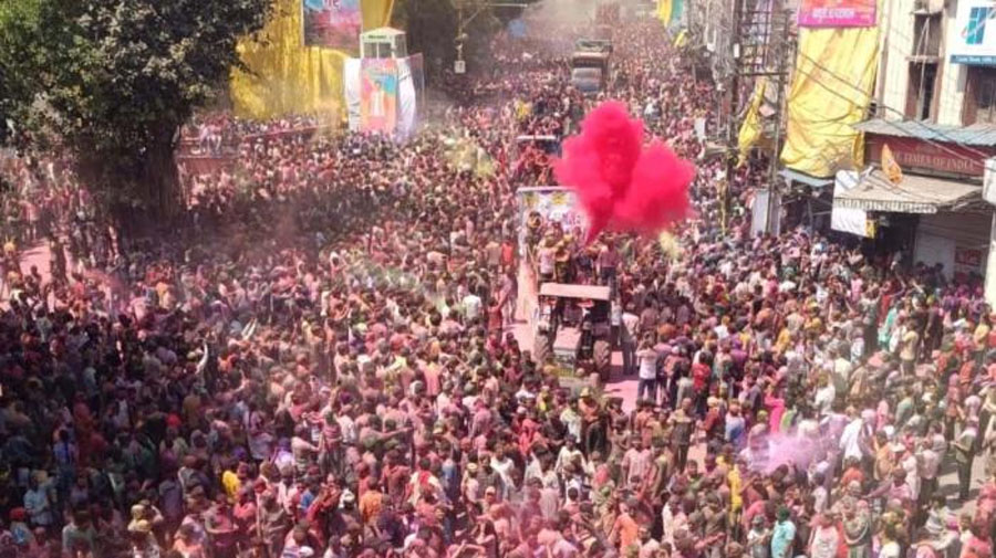 पूरा क्षेत्र रंगों से सराबोर है। इस अद्भुत नजरों के गवाह शहर के हर उम्र के लोग बन रहे हैं। लाखों लोगों की गेर इस दौरान यहां मौजूद हैं।