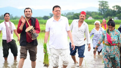सीएम पुष्कर सिंह धामी ने खटीमा में की धान की रोपाई