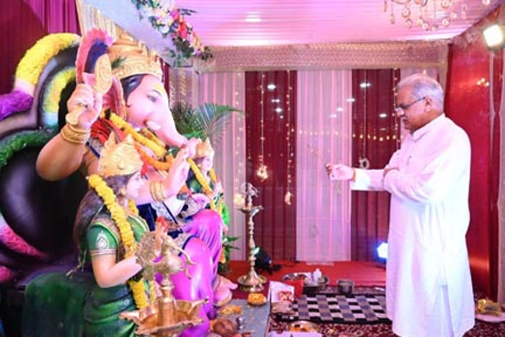 मुख्यमंत्री बघेल ने गणेश चतुर्थी पर भगवान गणेश की प्रतिमा की स्थापना की