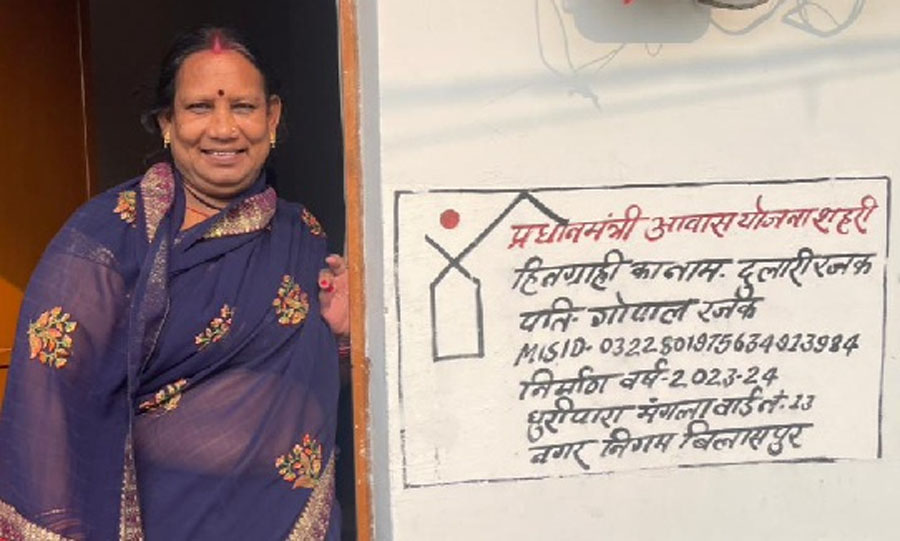 रायपुर। बिलासपुर के धुरीपारा मंगला में रहने वाली दुलारी बाई के लिए इस साल की दिवाली बेहद खास है। जो जीवन कभी बारिश के पानी से टपकती छत और मिट्टी की नम दीवारों के बीच गुज़रता था, उसमें अब खुशहाली आ गई है। प्रधानमंत्री आवास योजना (शहरी) के तहत उनका खुद का एक मज़बूत, पक्का घर बन गया है। इस बार वह अपने नए आशियाने में अपनी पहली दिवाली मनाएंगी, जिससे उनका उत्साह दोगुना हो गया है। इस सरकारी योजना के लिए उन्होंने प्रधानमंत्री नरेंद्र मोदी और मुख्यमंत्री श्री विष्णु देव साय का दिल से आभार व्यक्त किया है।