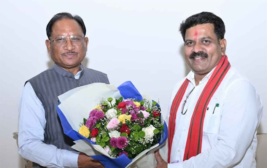 रायपुर। छत्तीसगढ़ को नक्सलवाद के अभिशाप से मुक्त करने की दिशा में मिली हालिया सफलता प्रदेश के इतिहास में एक मील का पत्थर साबित हुई है। इस ऐतिहासिक उपलब्धि के बाद, राज्य के उपमुख्यमंत्री श्री विजय शर्मा ने मुख्यमंत्री श्री विष्णु देव साय से उनके नवा रायपुर स्थित निवास पर भेंट की। उन्होंने इस बड़ी कामयाबी के लिए मुख्यमंत्री का अभिनंदन किया और पुष्पगुच्छ भेंट कर अपनी शुभकामनाएं दीं।