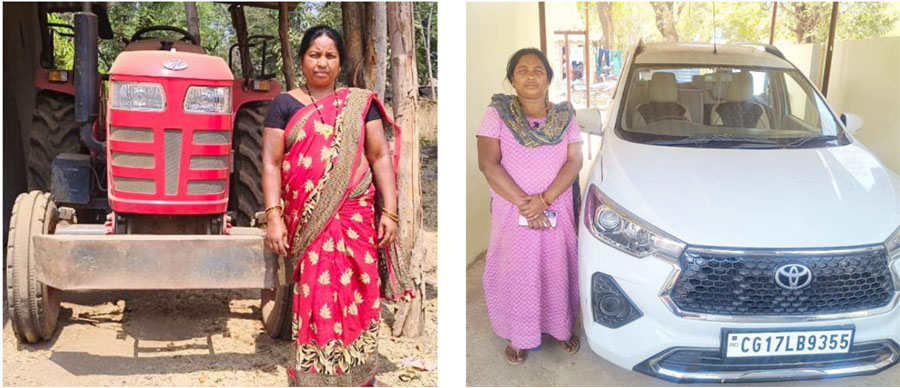 वाहनों की मालकिन: आज उनके पास खेती के लिए ट्रैक्टर, दो मोटरसाइकिल और खुद की कार भी है।