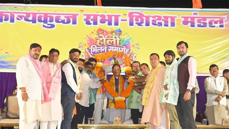 रायपुर। राजधानी रायपुर के आशीर्वाद भवन में आयोजित कान्यकुब्ज शिक्षा मंडल के होली मिलन समारोह में मुख्यमंत्री श्री विष्णु देव साय ने शिरकत की। इस अवसर पर उन्होंने समाज की एकजुटता की सराहना करते हुए कहा कि कान्यकुब्ज ब्राह्मण समाज का इतिहास अत्यंत गौरवशाली रहा है और यह समुदाय राज्य के चहुंमुखी विकास में स्तंभ की तरह कार्य कर रहा है। मुख्यमंत्री ने विभिन्न क्षेत्रों में उत्कृष्ट कार्य करने वाली समाज की विभूतियों को सम्मानित भी किया।