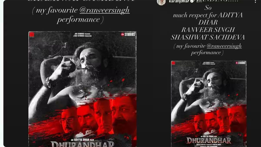 मुंबई (एजेंसी)। फ़िल्म ‘धुरंधर’ में रणवीर सिंह ने ‘हमज़ा’ के रूप में जो परिवर्तनकारी प्रदर्शन किया है, उसे मिल रही सराहना अविश्वसनीय है। दर्शक, समीक्षक और फिल्म जगत के अंदरूनी सूत्र एकमत हैं कि यह रणवीर के अब तक के सबसे परिपक्व, बहुआयामी और यादगार प्रदर्शनों में से एक है। यह एक बार फिर सिद्ध करता है कि वह अपनी पीढ़ी के सबसे बेहतरीन अभिनेताओं में से एक हैं। इस प्रशंसा की लहर में अब जाने-माने फिल्म निर्माता करण जौहर भी शामिल हो गए हैं, जिन्होंने पूरे उत्साह के साथ अपनी प्रतिक्रिया साझा की है।