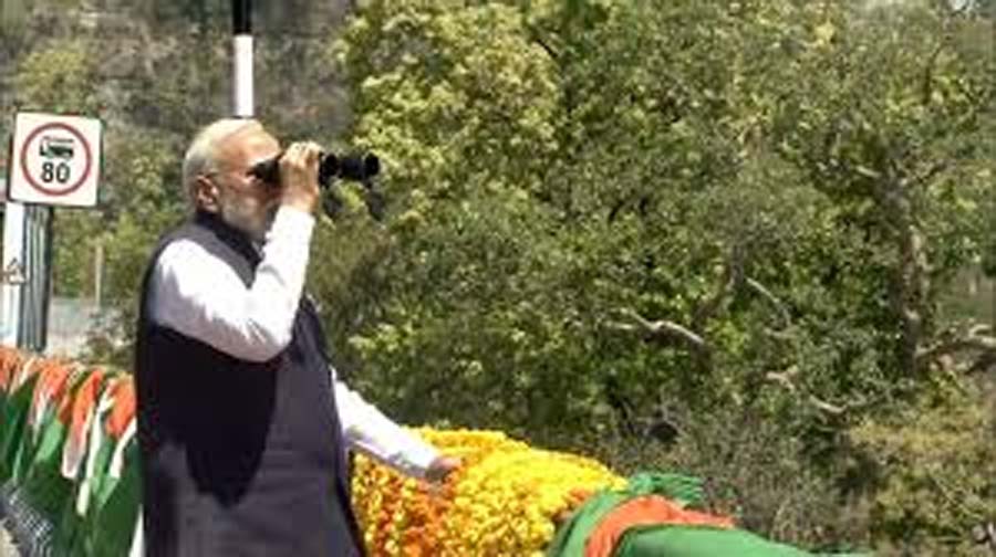 जन उत्साह: सड़क के दोनों ओर हजारों की संख्या में लोग ‘भारत माता की जय’ और ‘मोदी-मोदी’ के नारों के साथ खड़े थे।