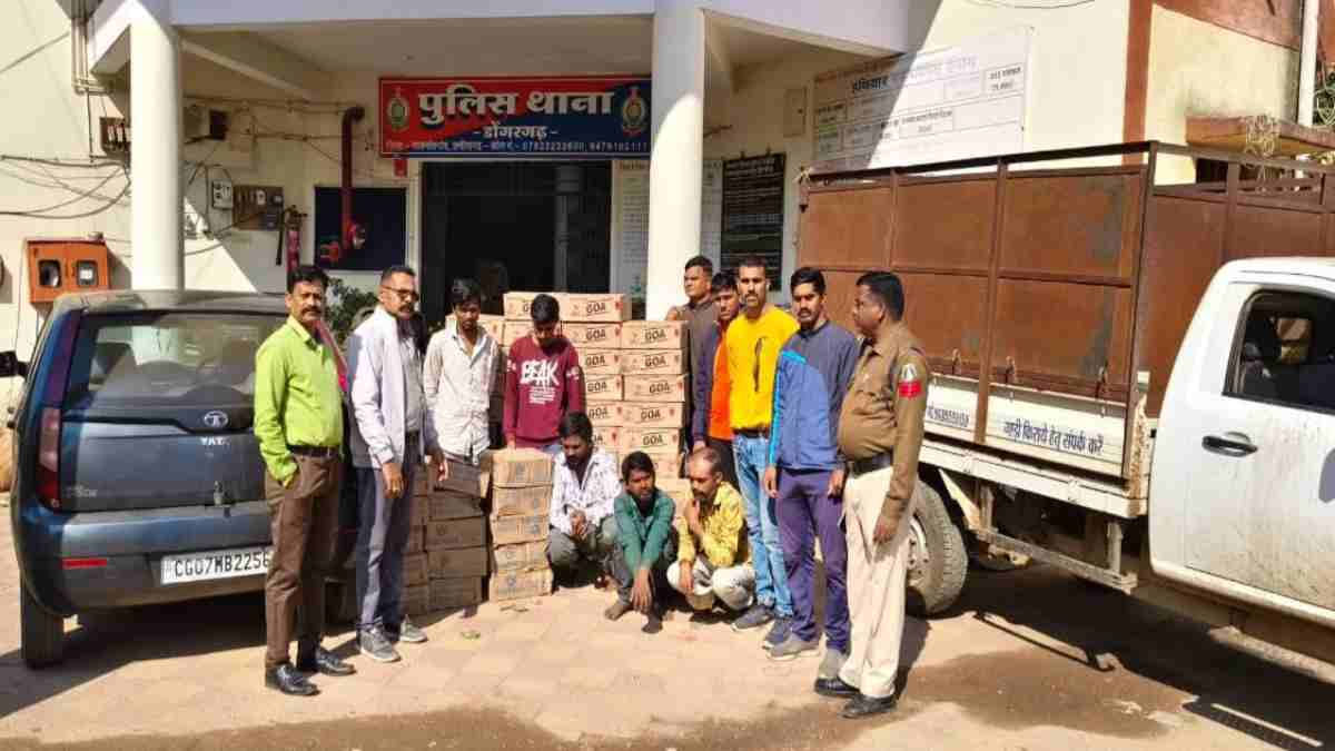 डोंगरगढ़ पुलिस ने 28 जनवरी 2025 को अवैध शराब तस्करी के बड़े मामले का खुलासा किया. पुलिस को सूचना मिली थी कि सब्जी लाने वाले वाहनों में शराब छिपाकर मध्यप्रदेश से छत्तीसगढ़ में तस्करी की जा रही है. ग्राम कुम्हड़ाटोला मार्ग पर नाकाबंदी कर पुलिस ने दो वाहनों यौधा डीआई और विस्टा कार को रोका. जब गाड़ियों की तलाशी ली तो 35 पेटी गोवा अंग्रेजी व्हिस्की और 10 पेटी देशी शराब बरामद हुई. बरामद शराब की कुल मात्रा 405 लीटर और कीमत 2,36,250 रुपए आंकी गई है. इसके साथ ही जब्त वाहनों, पांच मोबाइल फोन और अन्य सामग्रियों की कुल कीमत 14,62,250 रुपए है. पुलिस ने पांच अंतर्राज्यीय शराब तस्करों को गिरफ्तार किया, जिनके नाम राजेश तागड़े, ईश्वर साहू, रौवन चंद्राकर, सोहेल मिन्नी, और ऋषिकेश हटिले हैं. इन सभी के खिलाफ आबकारी अधिनियम के तहत मामला दर्ज किया गया.