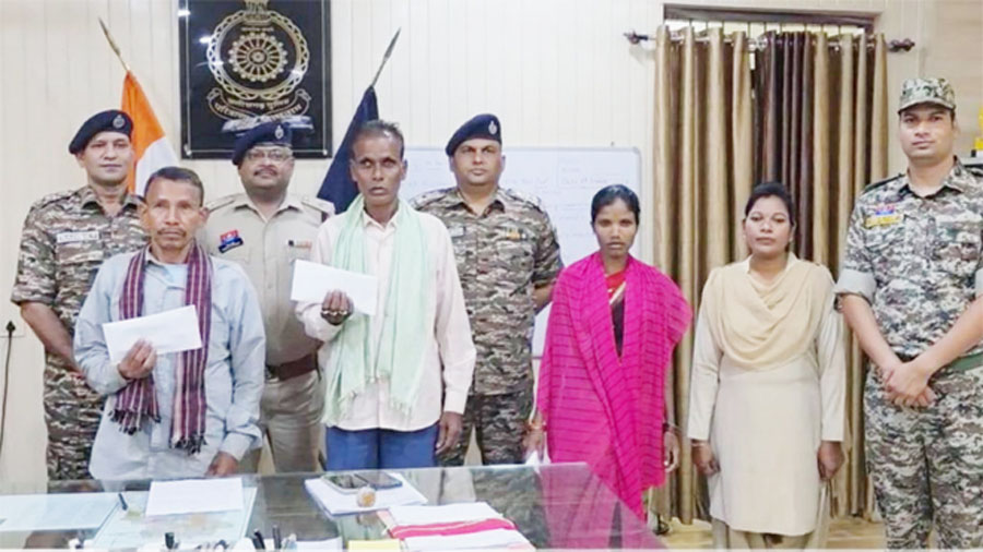 तीनों नक्सलियों ने पुलिस अधीक्षक पंकज चंद्रा के समक्ष अपने हथियार डालकर आत्मसमर्पण किया। इस मौके पर अतिरिक्त पुलिस अधीक्षक रूपेश कुमार डाण्डे, उप पुलिस अधीक्षक सतीष भार्गव और सीआरपीएफ 188वीं व 12वीं वाहिनी के अधिकारी भी मौजूद रहे।
